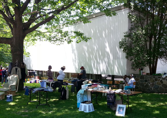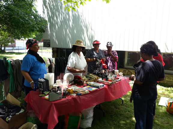 The Lord provided us with a beautiful, sunny and warm day. We set up our tables and displayed all the things which parishioners, and others, had offered up. The proceeds of our sale were given entirely to the Old Brewery Mission.
